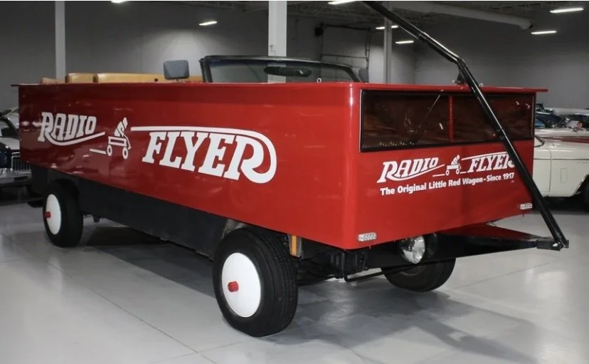 Perhaps the largest motorized Red Radio Flyer in existence brings smiles to all. Spanning 21 feet long, with a 12-foot pull handle this wagon is capable of giving nine people a comfortable ride in style. Powered by a Ford Super Duty Motor, this wagon is capable of traveling up to 80 miles per hour.